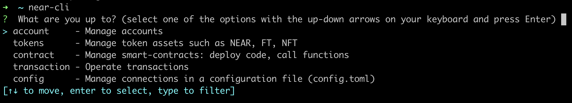 We provide examples only of the most used commands. Such commands may have two versions - a full one and a short one. If you want to explore all options provided by near-cli use the interactive mode described above.